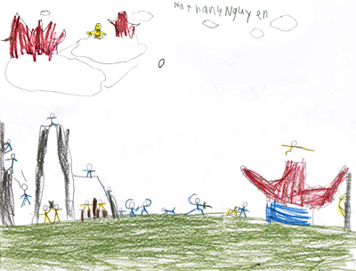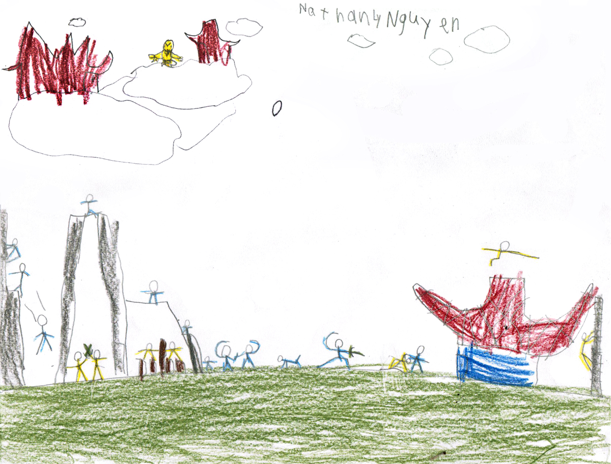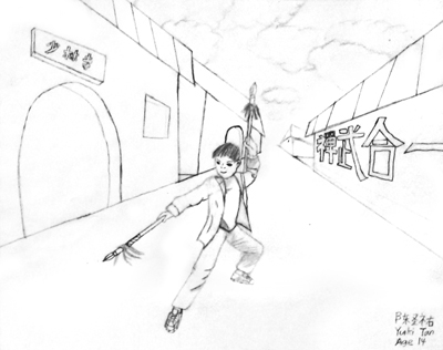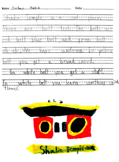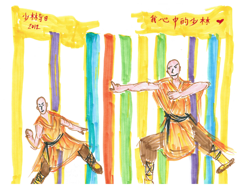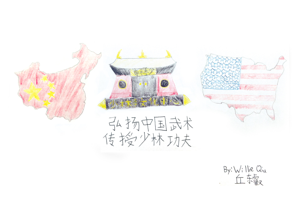 “My drawing is…inspired by Shaolin Temple coming over to the U.S. to teach Chinese culture.”