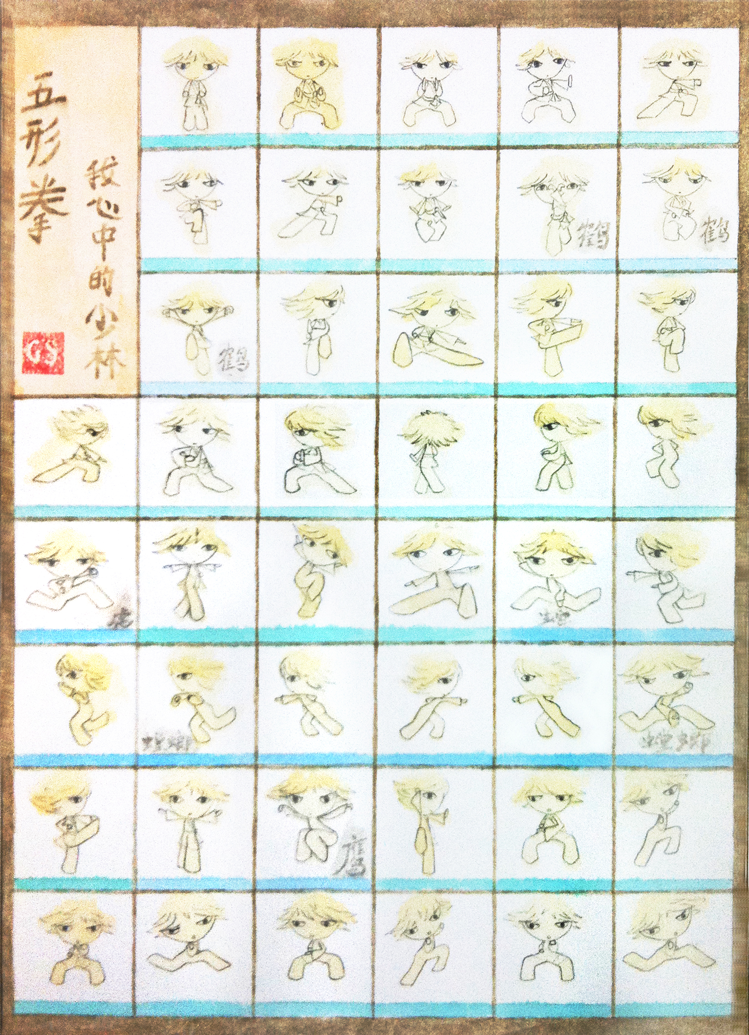 “An illustration of Five Motions (5 Stances Fist form). Inspired by the Kung Fu movements taught by the masters.”